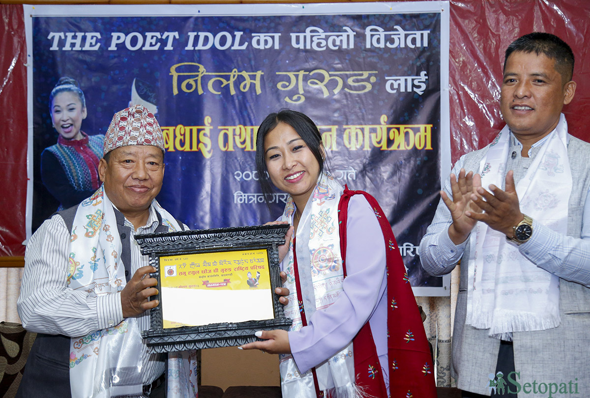 तमु ह्युल छोज धिं गुरूङ राष्ट्रिय परिषद्ले आइतबार नेपालको पहिलो ‘पोएट आइडल’का विजेता निलम गुरूङलाई सम्मान गरेको छ।