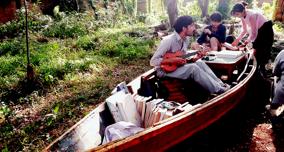 डुंगामै रहेको पुस्तकालयको कालजयी पुस्तकमा अक्षरहरूको स्वाद लिन्छन्। सत्यमोहन जोशीको जीवनी, प्रयोगशाला, कलासम्बन्धी पुस्तक, उपन्यास र अनुसन्धानमूलक पुस्तकहरू राखिएका छन्। अनि जमिनमाथिको यात्राको नयाँ अनुभूति संगाल्न पाउँछन् आगन्तुकहरू। त्यो अनुभूतिले जमिनमा रहे पनि बहँदै गरेको पानीको छालमाथिको यात्रामा भावनाहरू छचल्किन पुग्छ। त्यही नदीको यात्रामा डुब्न पुगिन्छ।