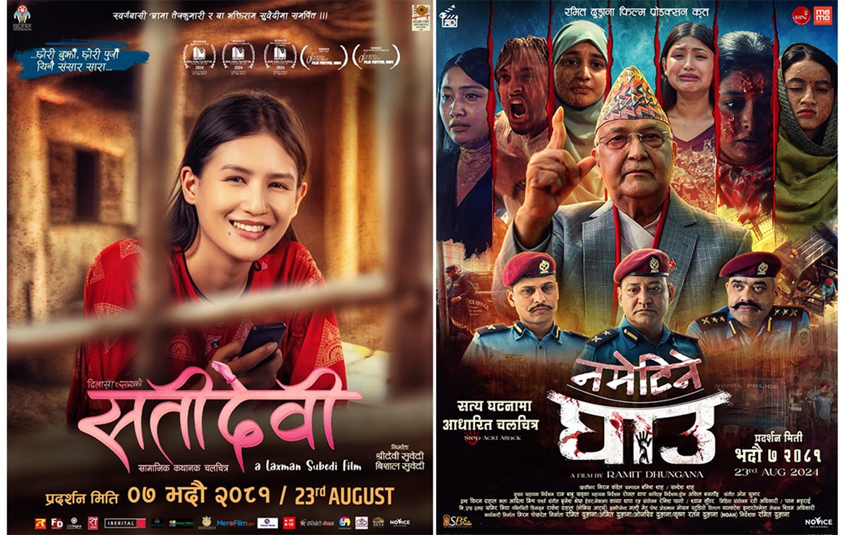 भोलिदेखि प्रदर्शनमा आउने तयारीमा रहेका फिल्म 'सतीदेवी' र 'नमेटिने घाउ' को अग्रिम टिकट बुकिङ खुला गरिएको छ।