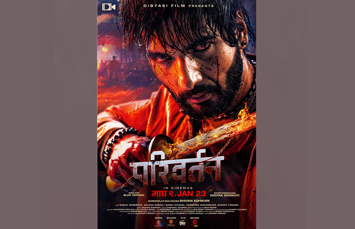दिब्यासी फिल्मस्को ब्यानरमा निर्माण भएको एक्सन फिल्म 'परिवर्तन' को फर्स्टलुक पोस्टर रिलिज भएको छ।