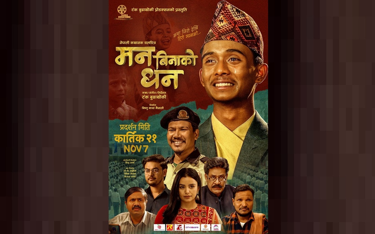 टंक बुढाथोकीको निर्माण तथा निर्देशनमा बनेको फिल्म 'मन बिनाको धन' को नयाँ पोस्टर सार्वजनिक गरिएको छ। शुक्रबार सार्वजनिक पोस्टरमा फिल्मका शीर्ष कलाकारहरूलाई देख्न सकिन्छ।
