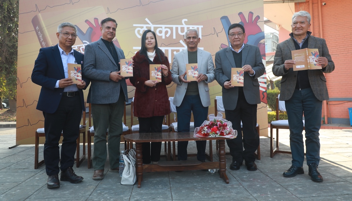 नेपाल प्रज्ञा प्रतिष्ठानको डबलीमा मंगलबार आयोजित समारोहमा वरिष्ठ नेत्ररोग विशेषज्ञ डा. सन्दुक रुइत, वरिष्ठ मुटुरोग विशेषज्ञ डा. भगवान कोइराला, धुलिखेल अस्पतालका संस्थापक डा. रामकण्ठ मकाजु, मुटुरोग विशेषज्ञ डा. स्मृति शाक्य, हास्यकलाकार हरिवंश आचार्य र लेखक कोजुले सो कृति लोकार्पण गरेका हुन्।