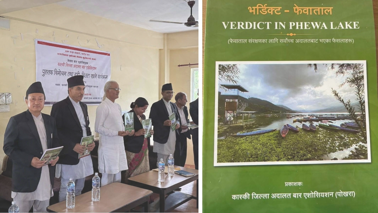 कास्की जिल्ला अदालत बार एसोसिएसनले ‘भर्डिक्ट फेवाताल– फेवाताल संरक्षणका लागि सर्वोच्च अदालतबाट भएका फैसलाहरूको पुस्तक प्रकाशन गरेको हो। पुस्तकमा सर्वोच्च अदालतले ताल संरक्षणका लागि दिएका ४ वटा आदेशहरू संग्रहित छन्।