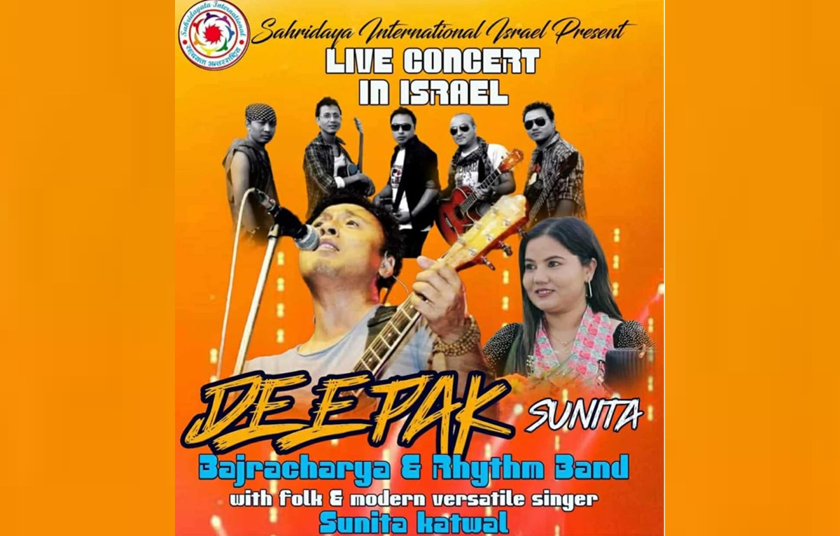 सहृदयता इन्टरनेसनल इजरायलले इजरायलमा सांगीतिक कन्सर्ट गर्ने भएको छ। आगामी नोभेम्बर १४ (कात्तिक २८) मा हुने कन्सर्टमा दीपक बज्राचार्य एण्ड रिदम ब्यान्ड र लोक तथा आधुनिक गायिका सुनिता कटुवालको प्रस्तुति रहनेछ।