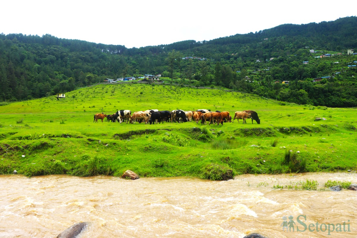 केही गाईहरू चितवन, मनाङ र कोरिया लगायतका स्थानबाट ल्याइएका छन्। वर्षायामको सिजन चलिरहेको छ। यस बेला हरियो घाँसले ढाकिएको चौरमा गाईहरू चर्न निस्कँदा, त्यो दृश्य हेरेर घण्टौं बितेको पत्तै हुँदैन। अहिले दैनिक ३६० लिटर दूध उत्पादन भइरहेको छ, जुन गाईको स्वास्थ्य, व्यवस्थापन र प्राकृतिक वातावरणको प्रतिफल हो।