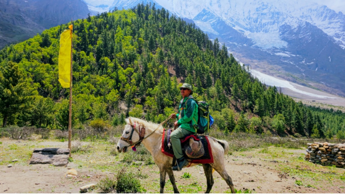 तालको माथिल्लो छेउमा बिहानको खाना खाएर कान्जिरोवाको पूर्वी मोहडा पट्टिबाट सानातिना हिमपहिरोहरूलाई दृश्यावलोकन गर्दै घोडामा पुनः उकालो लागियो।