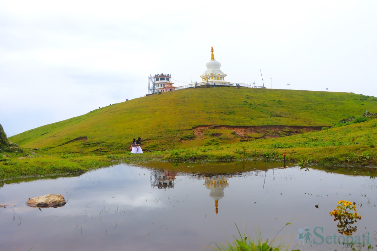 यसपटक मेरो विशेष रहर भने बिहानै शैलुङ डाँडाको टुप्पोमा उभिनु थियो। बिहान ५ बजे जब डाँडामा पुगेँ, त्यहाँको दृश्यले मन झनै बन्धक बनायो। चिसो हावा चलिरहेको थियो, तर हातमा क्यामेरा राख्न मनले मान्दैनथ्यो। करिब तीन घण्टाको बसाइँमा पनि फोटो खिच्ने रहर मर्दैनथ्यो। थुम्काथुम्कामा चौरी गाई रमाइरहेका थिए, काठमाडौं लगायतका स्थानबाट आएका पर्यटक प्रकृतिको सौन्दर्यमा हराइरहेका थिए। कोही भ्यूटावर चढेर भिडिओ खिच्दै थिए, कोही छ्योर्तेन वरिपरि परिक्रमा गर्दै। छ्योर्तेन पनि शैलुङकै सान बढाउने स्मारक बनेको रहेछ, जुन कुमार थोकरको पहलमा बनेको हो।