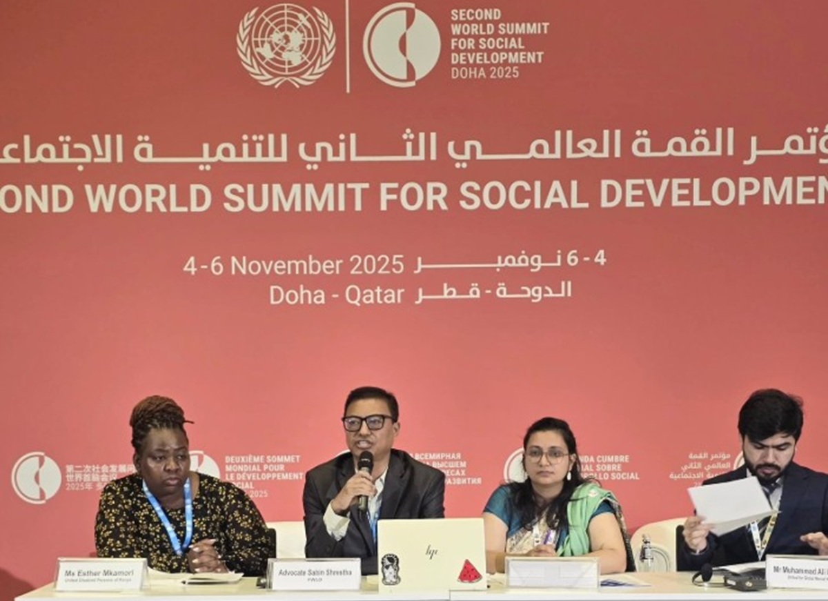 संयुक्त राष्ट्रसङ्घको महासभाको निर्णयअनुसार कतारको दोहामा जारी ‘सामाजिक विकासका लागि दोस्रो विश्व शिखर सम्मेलन’मा अपाङ्गता भएका व्यक्तिहरूको न्यायमा पहुँच विषयमा छलफल गरिएको छ।