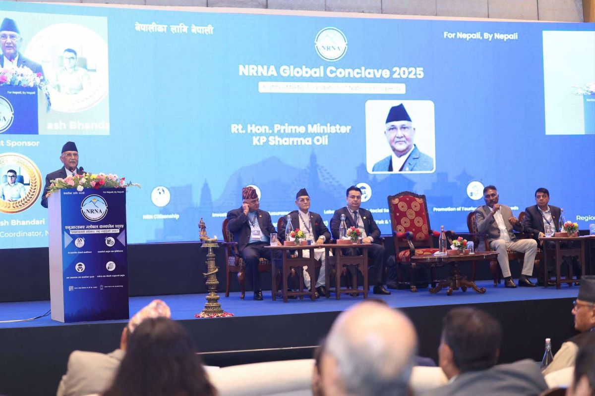 काठमाडौंमा आयोजित एनआरएनए ग्लोबल कन्क्लेभ-२०२५ को उद्घाटन गर्दै प्रधानमन्त्री ओलीले ११ औं महाधिवेशनबाट निर्वाचित भई हाल कार्यरत कार्यसमितिले नै विधि र विधानपूर्वक आगामी अक्टोबरमा १२ औँ महाधिवेशन गर्नुपर्नेमा जोड दिएका हुन्।