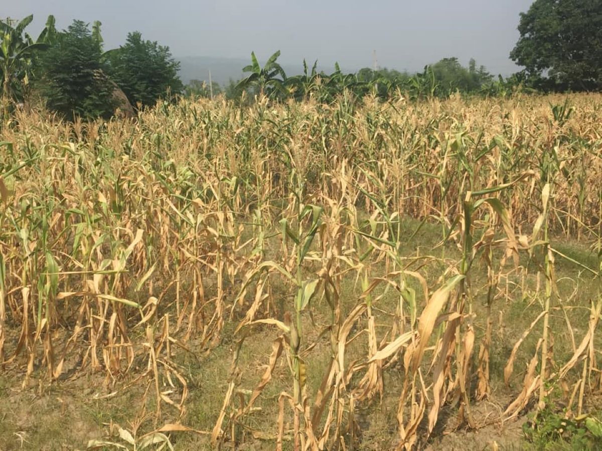 मकैको घोगा लाग्ने र पाक्ने बेलामा बढ्दो तापक्रम र खडेरीले मकैका बोट सुक्न थालेपछि किसान चिन्तित बनेका हुन्।