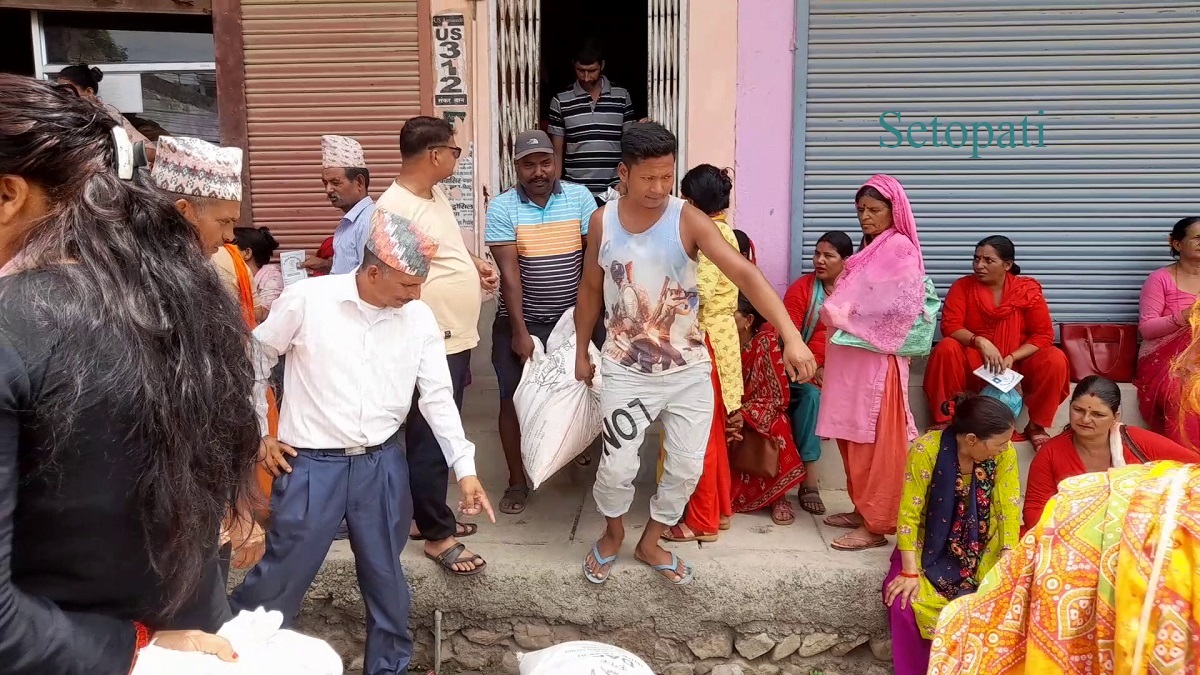 त्यसैले उनीहरू खेतबारीको कामको चटारो बिसाएर मल वितरण हुने ठाउँ पुग्छन्। वितरण केन्द्रले एक किसान बराबर पाँच किलो मात्र मल दिन्छ। यतिका लागि दिनभर लाम लागेर सास्ती भने औधि खेप्नुपर्छ।