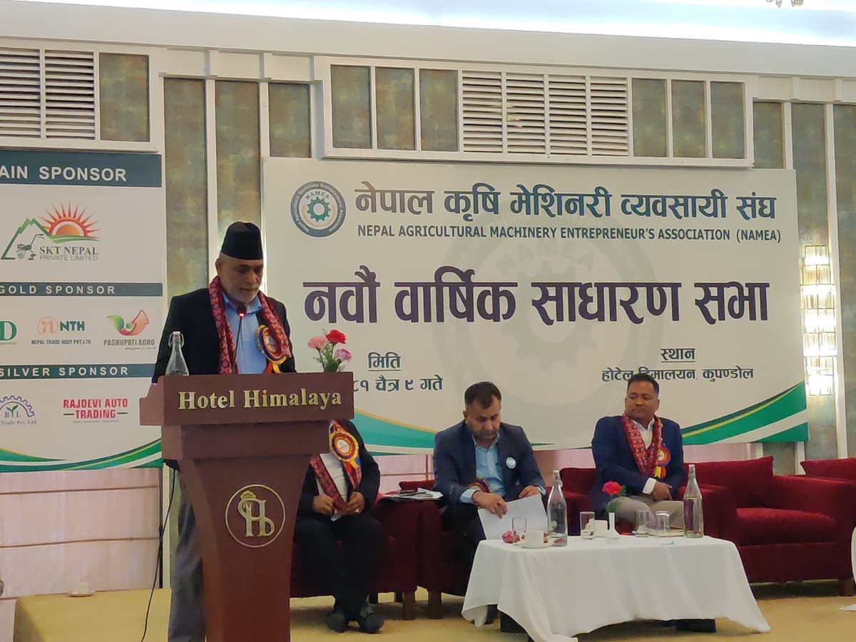शनिबार ललितपुरमा आयोजित नेपाल कृषि मेसिनरी व्यवसायी संघको नवौ वार्षिक साधारण सभामा यस्तो बताएका हुन्।