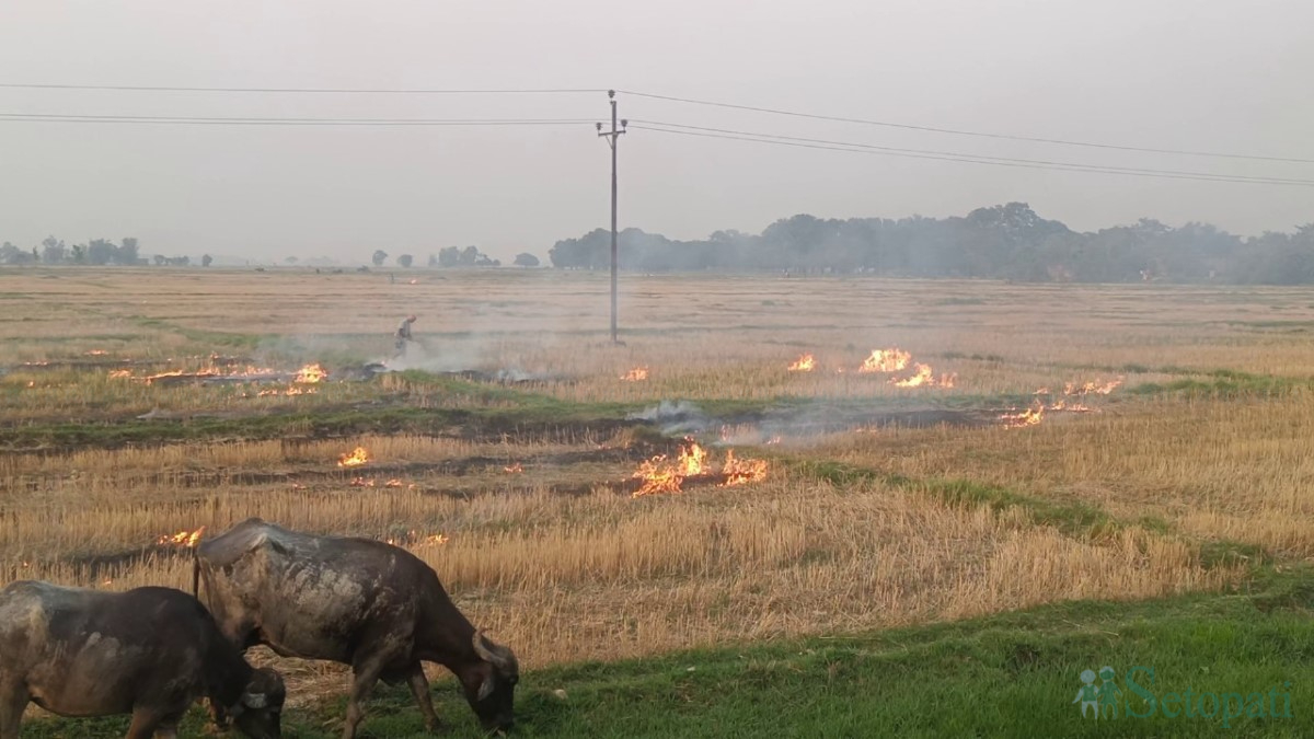 गत जेठको पहिलो साता कपिलवस्तुको लबनीका नन्दु रैदास गहुँ काटेर छोडिएको ठुटामा आगो लगाइरहेका थिए। लुम्बिनी–तौलिहवा सडक खण्डको छेवैमा रहेको खेतमा आगो लगाई रहेका नन्दुले पनि गहुँको नल नजलाए धान रोप्नै नसकिने बताए।