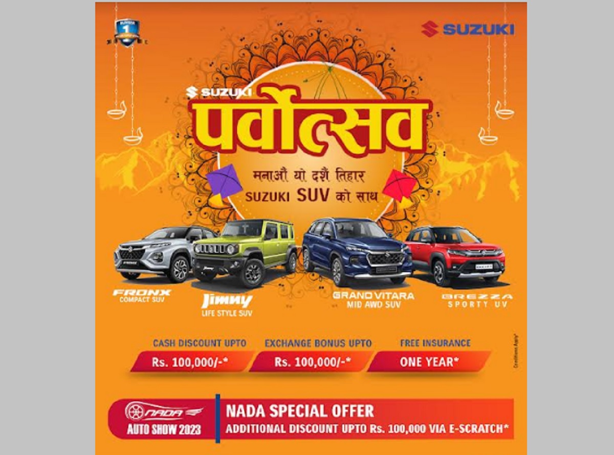 नेपालका लागि सुजुकी कारको आधिकारिक विक्रेता तथा सिजी होल्डिंस अटोमोटिभ डिभिजन सिजी मोटोकर्पले आगामी दसैं तिहार भरीका लागि आकर्षक ग्राहक योजना 'सुजुकी पर्वोत्सव अफर' सार्वजनिक गरेको थियो।