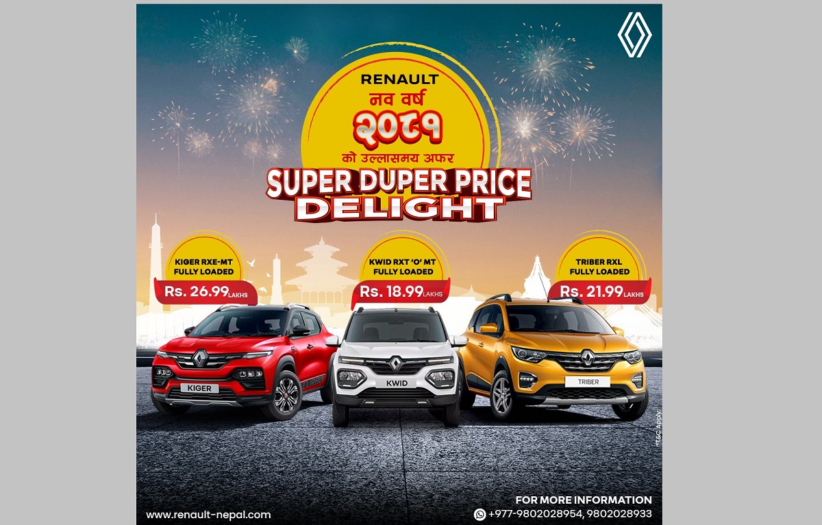 रेनो मोटर्सको नेपालका लागि आधिकारिक वितरक एडभान्सड अटोमोबाइल्सले 'सुपर डुपर प्राइस डिलाइट' अभियानको शुभारम्भ गरेको छ।