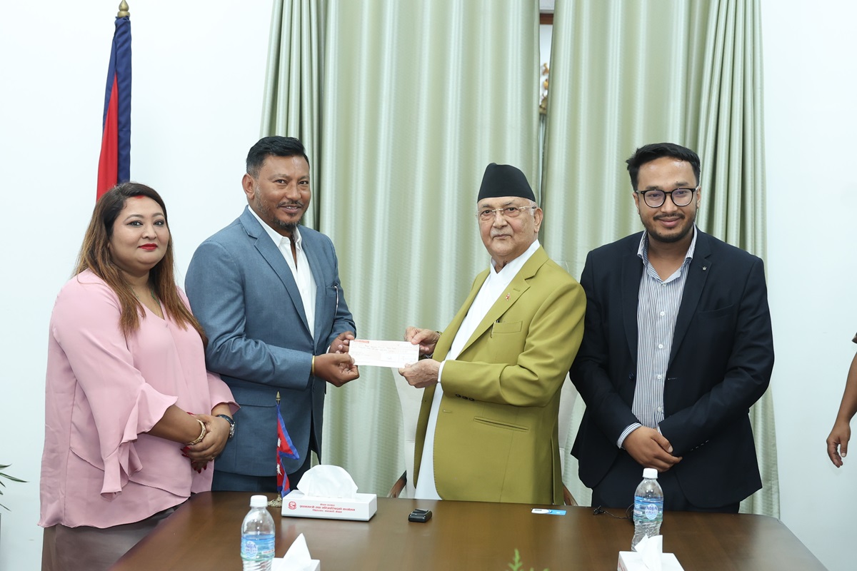 एक कार्यक्रमकाबीच शुक्रबार साइमेक्स इंकका अध्यक्ष अनिल श्रेष्ठले प्रधानमन्त्री केपी शर्मा ओलीलाई सो रकमको चेक हस्तान्तरण गरे।