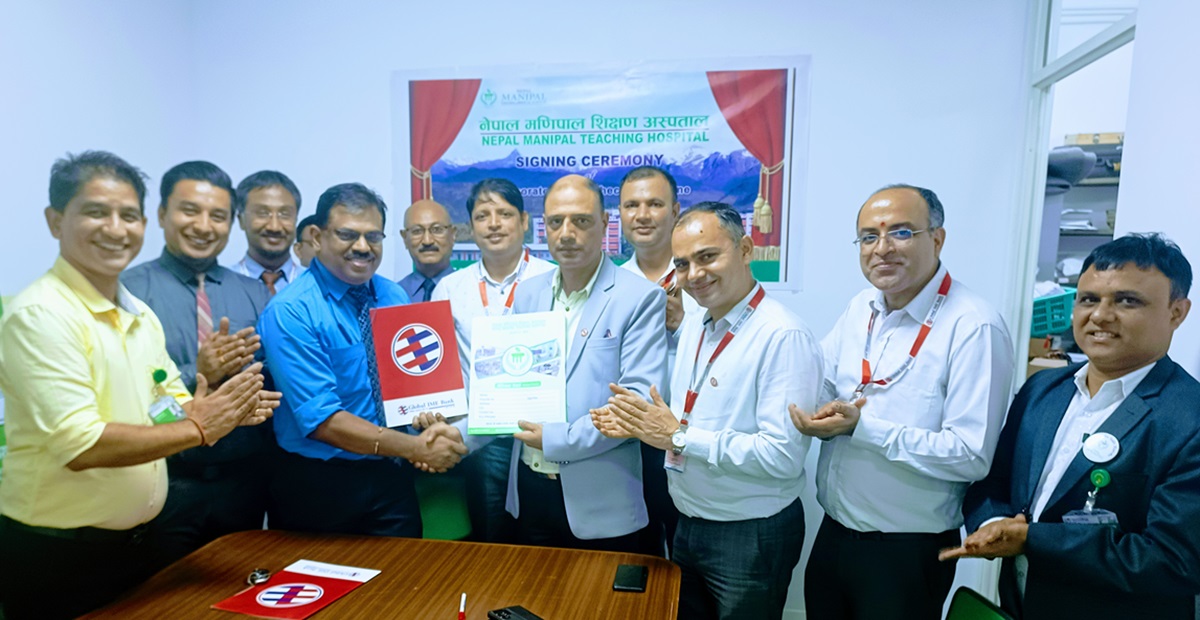 ग्लोबल आइएमई बैंक र नेपाल मणिपाल शिक्षण अस्पतालबीच ग्लोबल आइएमई बैंकका ग्राहकहरूलाई अस्पतालमा उपलब्ध विभिन्न स्वास्थ्य सेवामा छुट प्रदान गर्ने सहमति पत्रमा हस्ताक्षर सम्पन्न भएको छ।
