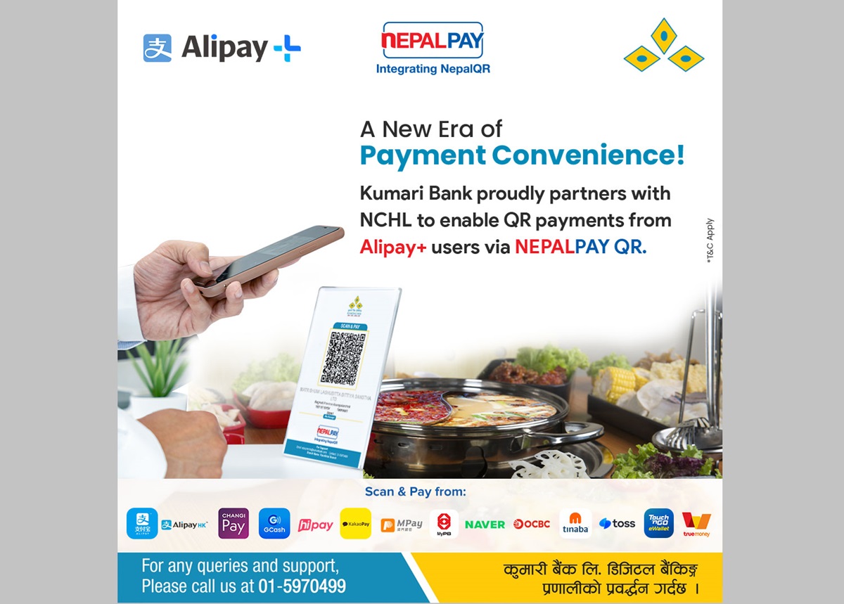 यो सेवा मार्फत अलि पे प्लस प्रयोगकर्ताले कुमारी बैंकको नेपाल पे क्युआर रहेका व्यवसायहरूमा सहज र सुरक्षित रूपमा भुक्तानी गर्न सक्नेछन्।