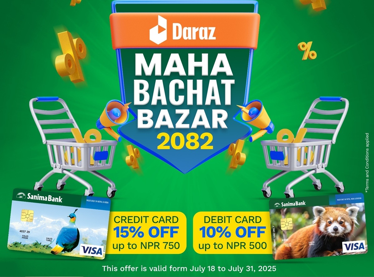 अनलाइन बजार दराज नेपालको ‘महाबचत बजार २०८२’ योजनामा सानिमा बैंकले ग्राहकका लागि विशेष छुट सहयोग गर्ने भएको छ।