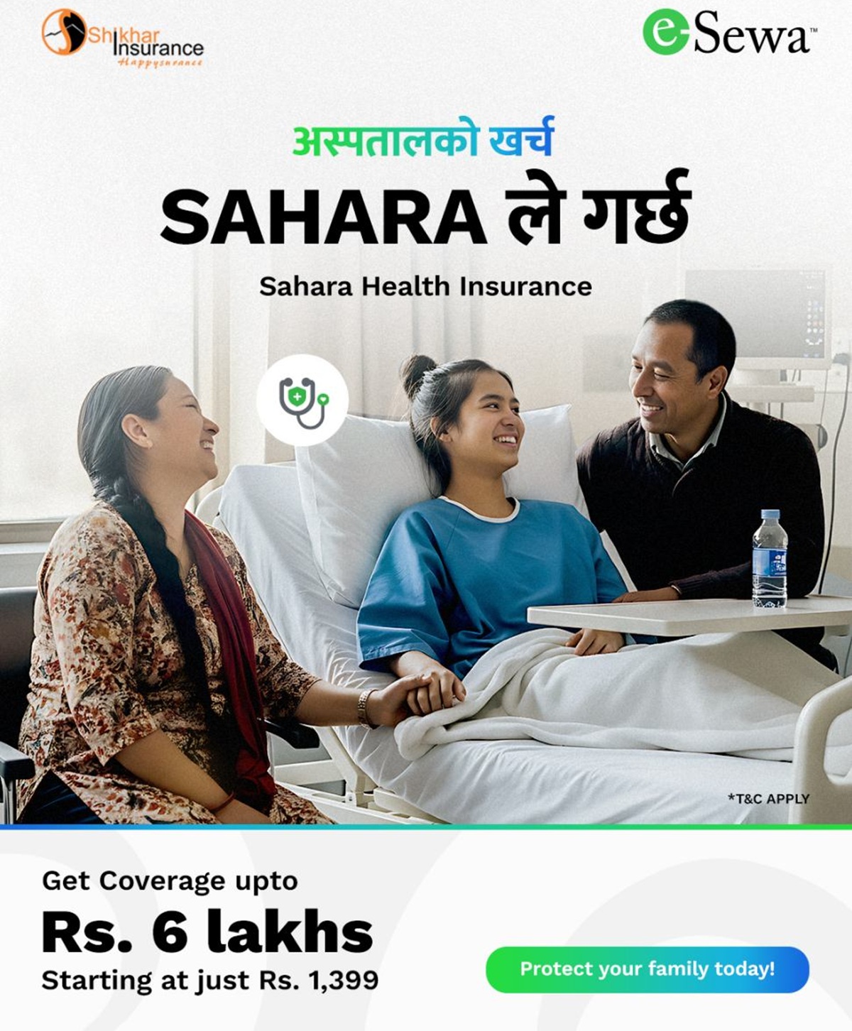 भुक्तानी सेवा प्रदायक इसेवा र शिखर इन्सुरेन्स कम्पनीले सहकार्यमा नयाँ स्वास्थ्य बीमा योजना ‘सहारा हेल्थ इन्सुरेन्स’ सार्वजनिक गरेको छ।