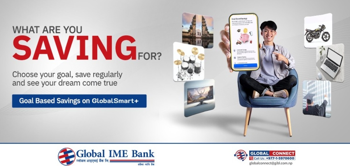 ग्लोबल आइएमई बैंकले लक्ष्य निर्धारण गरी लक्ष्य अनुसारको रकम बचत गर्न सक्ने ‘गोल बेस्ड सेभिङ’ योजना संचालन गरिरहेको छ।