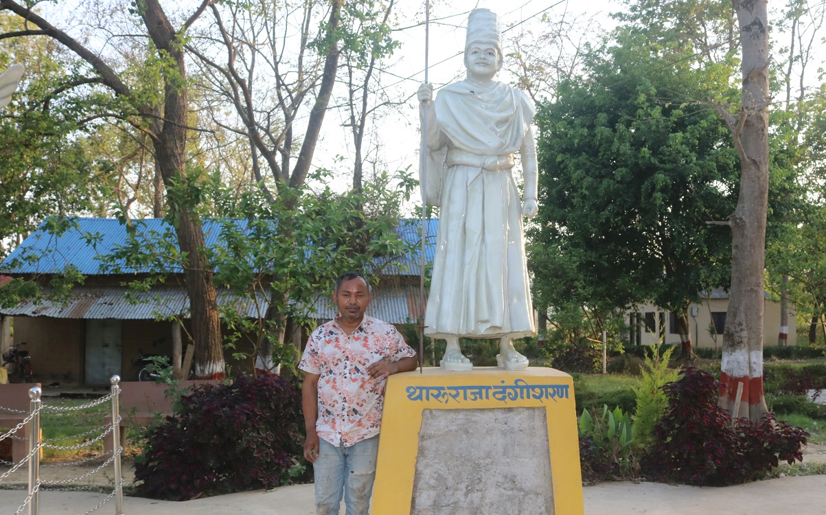 'आफू थारूको बच्चा, थारूको इतिहास र संस्कृतिअनुसार दंगीशरण राजाको स्वरूप परिकल्पना गरेर मूर्ति बनाउनु मेरा लागि ठूलो अवसर र चुनौती थियो,' मिठुले भने, 'मूर्ति दुई हप्तामा तयार पारेँ।'