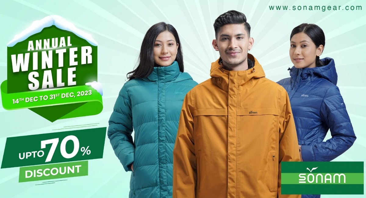 नेपाली ब्रान्ड सोनामले मंसिर २८ गतेदेखि पुस १५ गतेसम्म व्यक्तिगत प्रयोजन तथा ट्रेकिङमा उपयोग सामग्रीहरूमा वार्षिक विन्टर छुट योजना लागू गरेको छ।