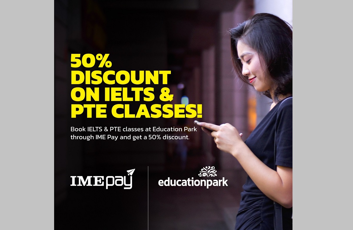 डिजिटल वालेट 'आइएमई पे' र एजुकेशन पार्कबीच आइइएलटिएस र पिटिइको तयारी कक्षामा ५० प्रतिशत छुट दिने सम्झौता भएको छ।