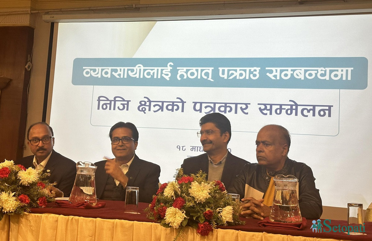 ‘महासंघले सम्बन्धित विषयको गहिरो अनुसन्धान नभएसम्म व्यवसायीलाई पक्राउ नगर्न सरकारलाई पटकपटक आग्रह गर्दै आएको छ। पहिले गिरफ्तार गर्ने र त्यसपछि समस्या पहिल्याउने प्रवृत्तिले देशको वर्तमान व्यवसायिक परिदृश्यबाट पहिले नै निराश भएका व्यवसायीहरूलाई थप निरुत्साहित बनाएको छ,’ विज्ञप्तिमा भनिएको छ, ‘महासंघ यस विषयमा पहिले सत्यतथ्य पत्ता लगाएर आवश्यक परे कानुनी कारबाही अघि बढाउन सरकारलाई आग्रह गर्दछ।’