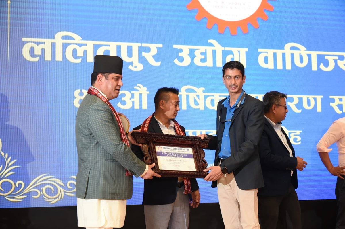 पस्मिना निर्यातकर्ता कम्पनी ट्राइकोटलाई 'एक्स्पोर्ट एक्सिलेन्स अवार्ड २०२४' बाट सम्मानित भएको छ। ललितपुर उद्योग वाणिज्य संघले उक्त कम्पनीलाई सम्मान गरेको हो।