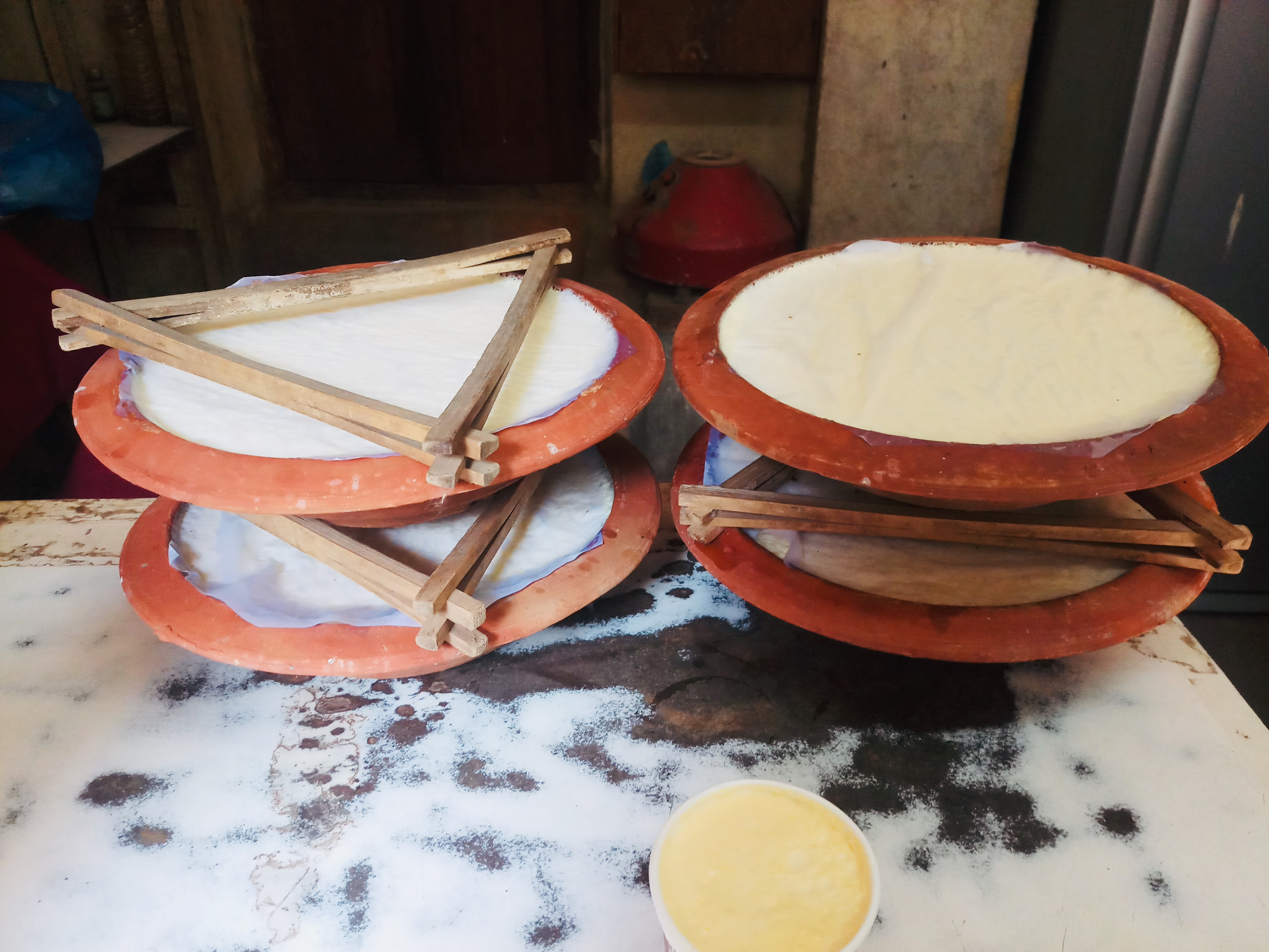 'दही जमाएको भाँडामुनि भुस राख्छौं भने माथिबाट सिरक, कम्बल लगायत कपडाले छोप्छौं,' उनले भने, 'यही नै परम्परागत जुजुधौ बनाउने तरिका हो।'