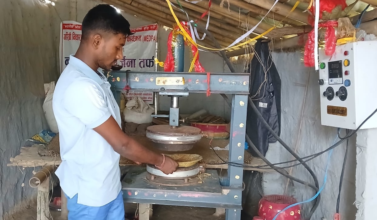 'जंगलमा खेर जाने पात सदुपयोग गरेर व्यवसाय हुने बलियो सम्भावना देखेँ,' जितेन्द्रले भने, 'विदेश जान जम्मा गरेको एक लाख रूपैयाँ थियो। वडाले अनुदान पनि दिने भयो। मैले कतार जाने योजना त्यागेँ।'