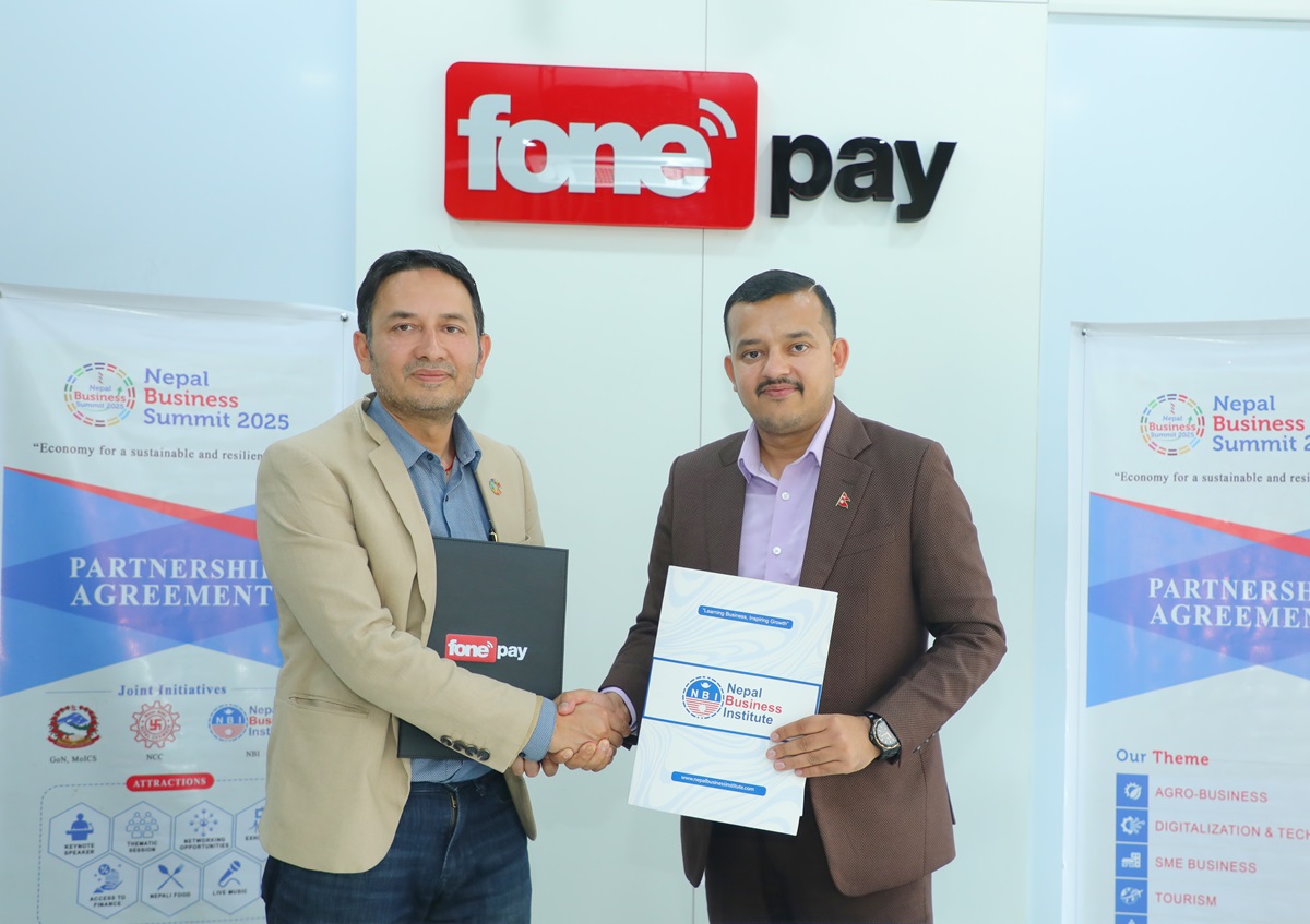 सम्मेलनमा साझेदारीबारे फोनपेका तर्फबाट प्रमुख सञ्चालन अधिकृत पारस कुँवर र नेपाल बिजनेश इन्स्टिच्युट (एनबिआई) का तर्फबाट कार्यकारी अध्यक्ष विशाल गैरेले समझदारी पत्रमा हस्ताक्षर गरे।