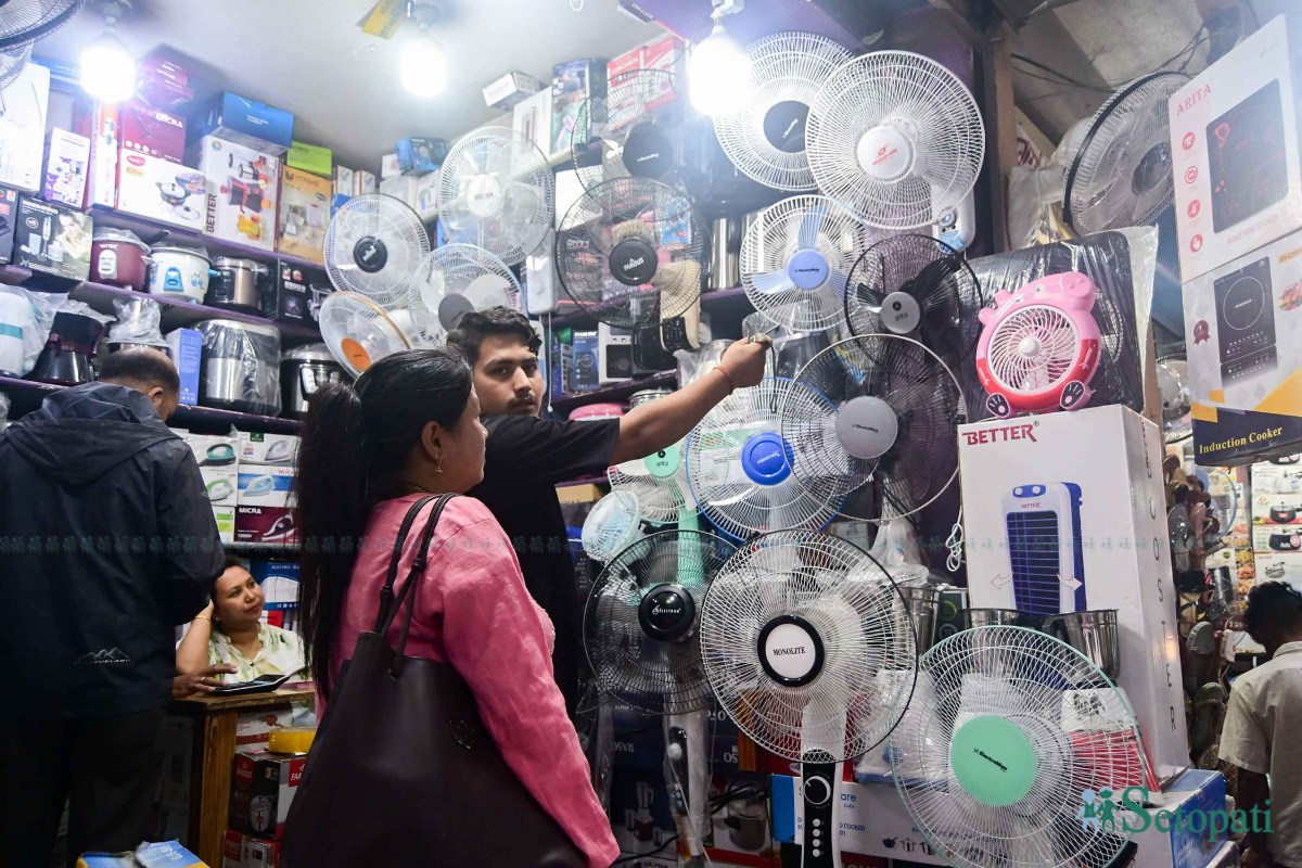 काठमाडौंको असन, महाबौद्धस्थित पसलहरूमा पंखाको बिक्री धेरै हुन थालेको हो।