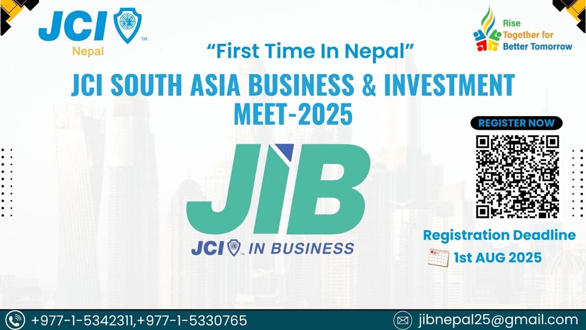 जेसिआई नेपालको आयोजनामा नेपालमा पहिलो पटक जेसिआई सउथ एसिया बिजनेस एण्ड इन्भेष्टमेन्ट मिट २०२५ आयोजना हुने भएको छ।