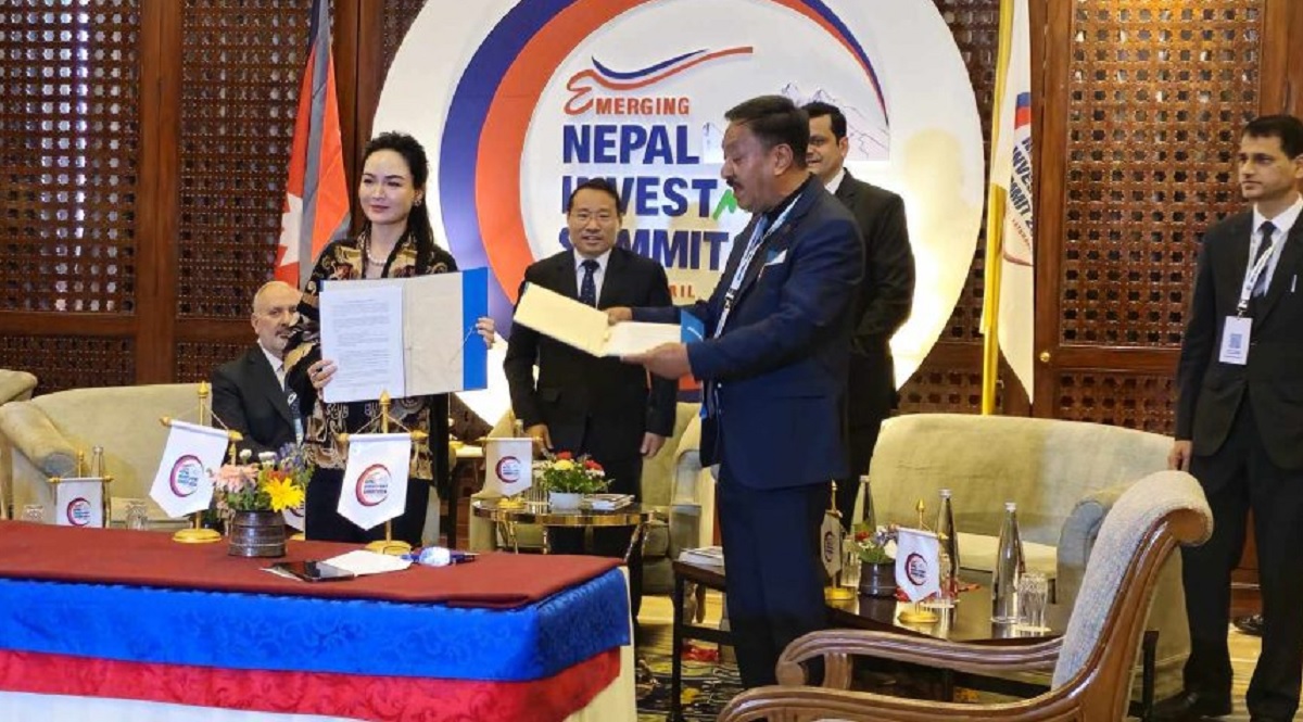 तेस्रो लगानी सम्मेलनमा नेपाली व्यवसायिक समूह साख: र चिनियाँ कम्पनीबीच होटेल निर्माणको लागि सम्झौता भएको छ।