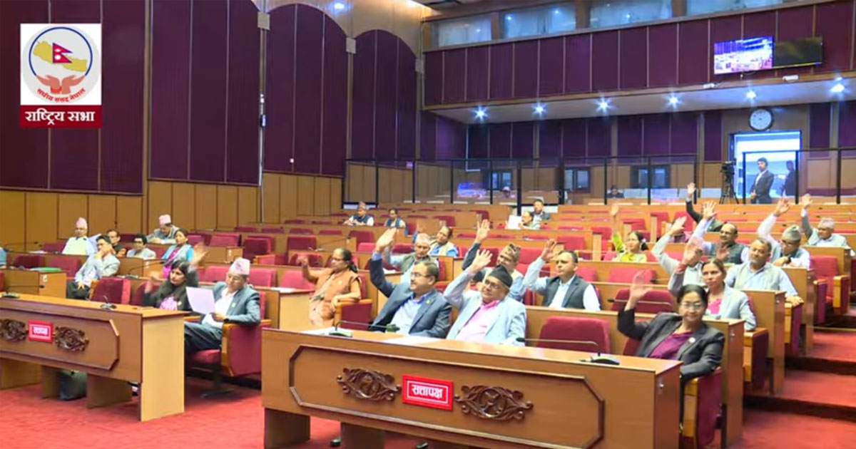 राष्ट्रिय सभाबाट आगामी आर्थिक वर्ष २०८१/०८२ को विनियोजन विधेयक अर्थात् बजेट पारित भएको छ।