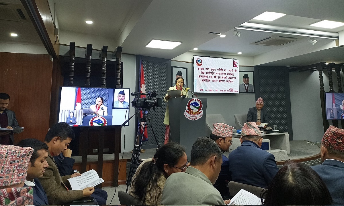 कार्यक्रममा मन्त्री शर्माले एक वर्षको अवधीमा मन्त्रालयबाट भएका कार्यहरूको समीक्षा गरिन्। कार्यभार सम्हालेपछि मन्त्रालयबाट नीतिगत र कानुनी सुधारका थुप्रै कामहरू गरेको बताइन्।