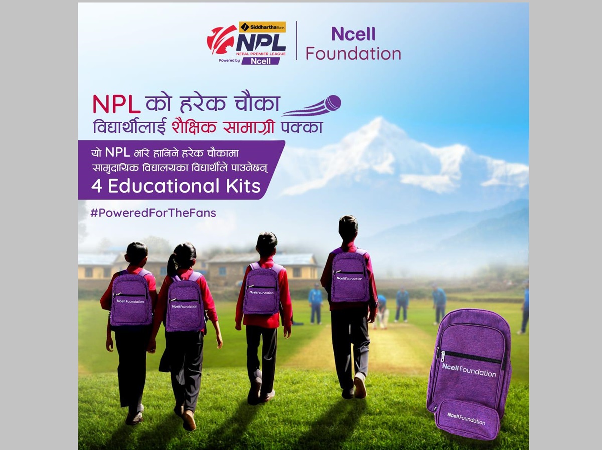 सिद्धार्थ बैंक नेपाल प्रिमियर लिग (एनपिएल) पावर्ड बाई एनसेलका खेलहरूमा हानिने प्रत्येक चौका वापत एनसेल फाउन्डेसनले ग्रामीण र दुर्गम क्षेत्रका सामुदायिक विद्यालयका विद्यार्थीहरूलाई चारवटा शैक्षिक सामग्री प्रदान गर्नेछ।