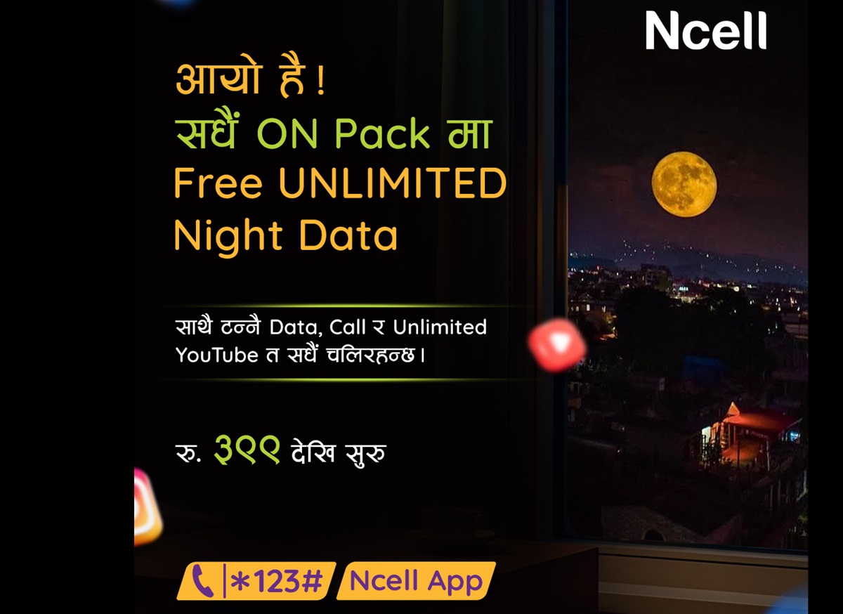 एनसेलले आफ्ना सधैँ अन प्याकहरू लिने ग्राहकहरूलाई आकर्षक अनलिमिटेड नाइट डेटा प्याक दिन थालेको छ।