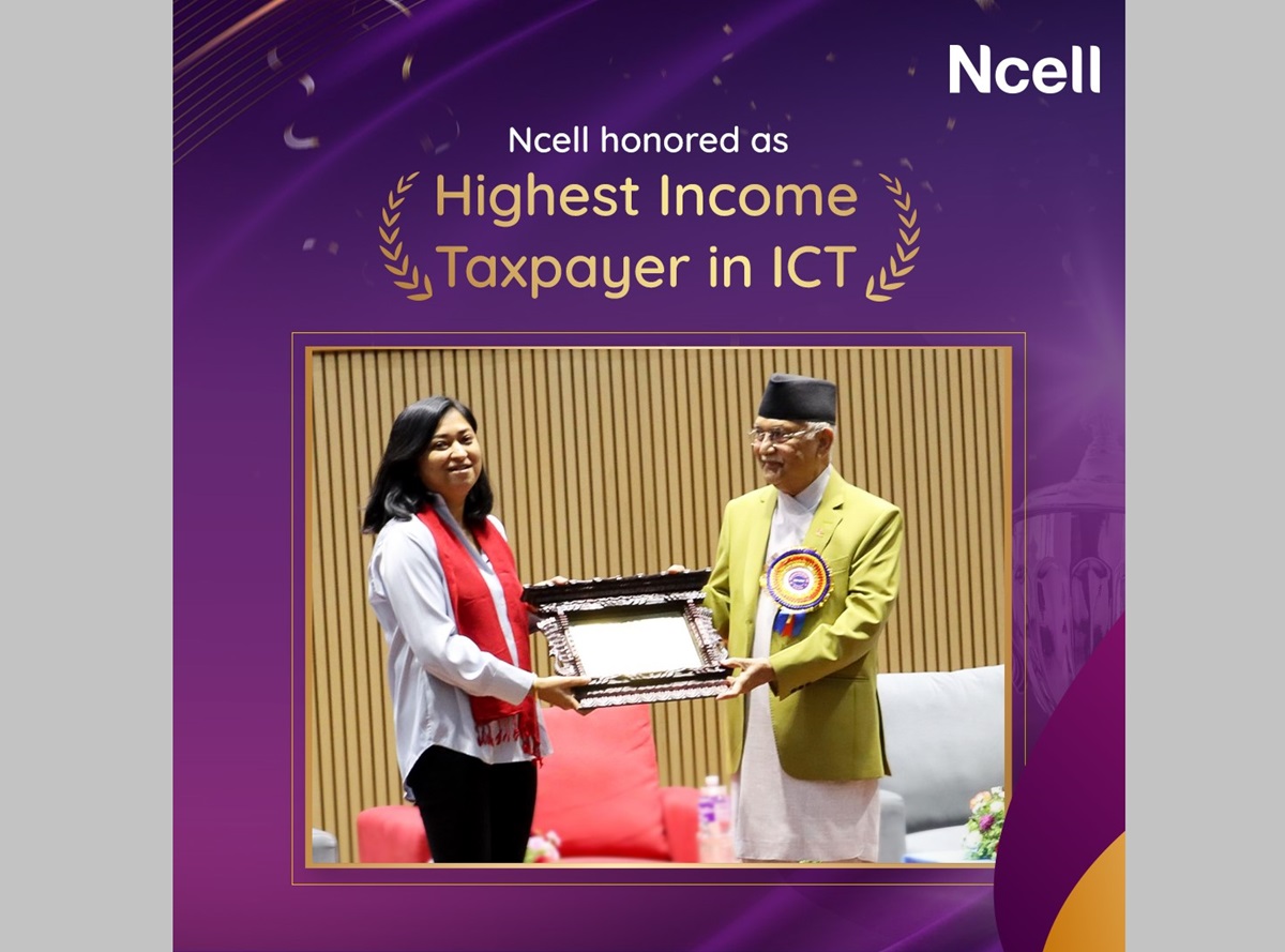 नेपाल सरकारले देशको सूचना तथा सञ्चार प्रविधि (आइसिटी) क्षेत्रको सबैभन्दा धेरै आयकर तिर्ने करदाताका रूपमा एनसेललाई सम्मान गरेको छ।