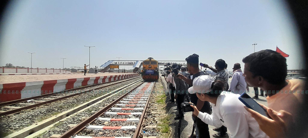 औद्योगिक कच्चा पदार्थ बोकेर रेल विराटनगरको एकीकृत भन्सार जाँच चौकी (आइसिपी) आइपुग्दा नेपाली पक्षले भव्य स्वागत गरेको छ। स्थानीय उद्योगी व्यवसायी, स्थानीयबासी र सरकारी प्रतिनिधिहरूले स्वागत गरेका हुन्।