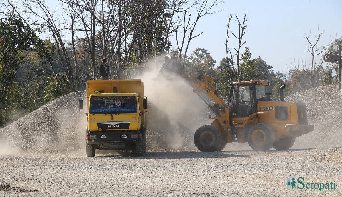 सडकको धेरै ठाउँमा सबबेस र बेस विच्छ्याउने अवस्थामा पुगेको तर क्रसर उद्योगका लागि चाहिने कच्चापर्दाथ नदीबाट निकाल्न नदिइएका कारण काम रोक्नु परेको दाहालले बताए। कालीगण्डकी धार्मिक नदी पनि हो। यहाँ शालिग्राम पाइने भएकाले क्रसर व्यवसायीले जथाभावी उत्खनन् हुँदा यसको संस्कृति र सभ्यता नै लोप हुन थालेको भनेर सर्वोच्च अदालतमा मुद्दा दायर भएपछि अदालतको अन्तरिम आदेशपछि स्थानीय तहले समेत नदीबाट ढुङ्गा गिट्टी उत्खनन्का लागि ठेक्का लगाउन सकेका छैनन्।
