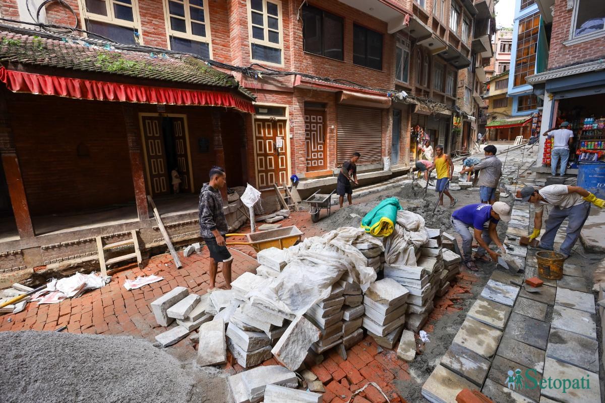 काठमाडौंका कोर क्षेत्रका भित्री सडक धमाधम मर्मत भइरहेको छ।