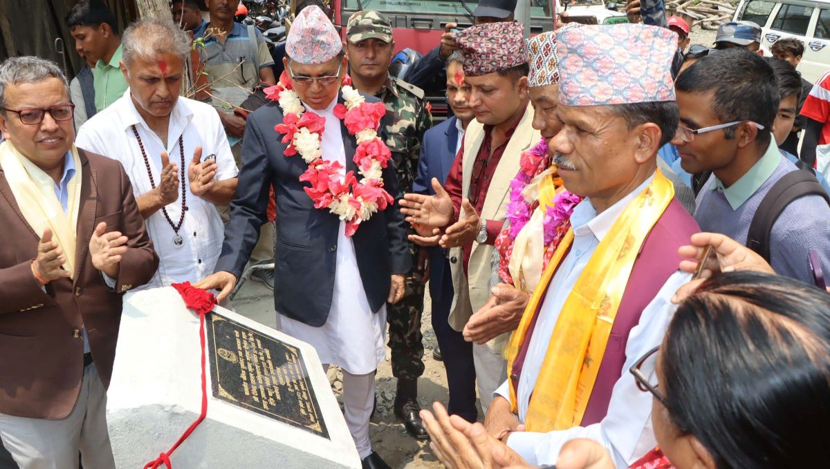 तत्कालीन प्रधानमन्त्री स्व. मनमोहन अधिकारीले २०५१ सालमा शिलान्यास गरेको यस सडक आइतबार मन्त्री दाहालले औपचारिकरूपमा शिलालेख अनावरण गर्दै कालोपत्र शुभारम्भ गरेका हुन्।