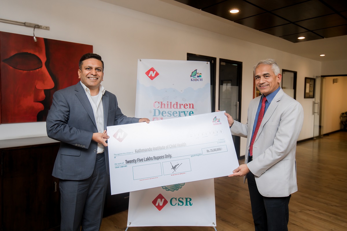 मंगलबार निम्बसको कार्यालयमा आयोजित एक कार्यक्रमकाबीच निम्बसका अध्यक्ष आनन्द बगडियाले काठमाडौं इन्स्टिच्युट अफ चाइल्ड हेल्थका संस्थापक अध्यक्ष प्रा.डा. भगवान कोइरालालाई उक्त सहयोग रकम हस्तान्तरण गरे।