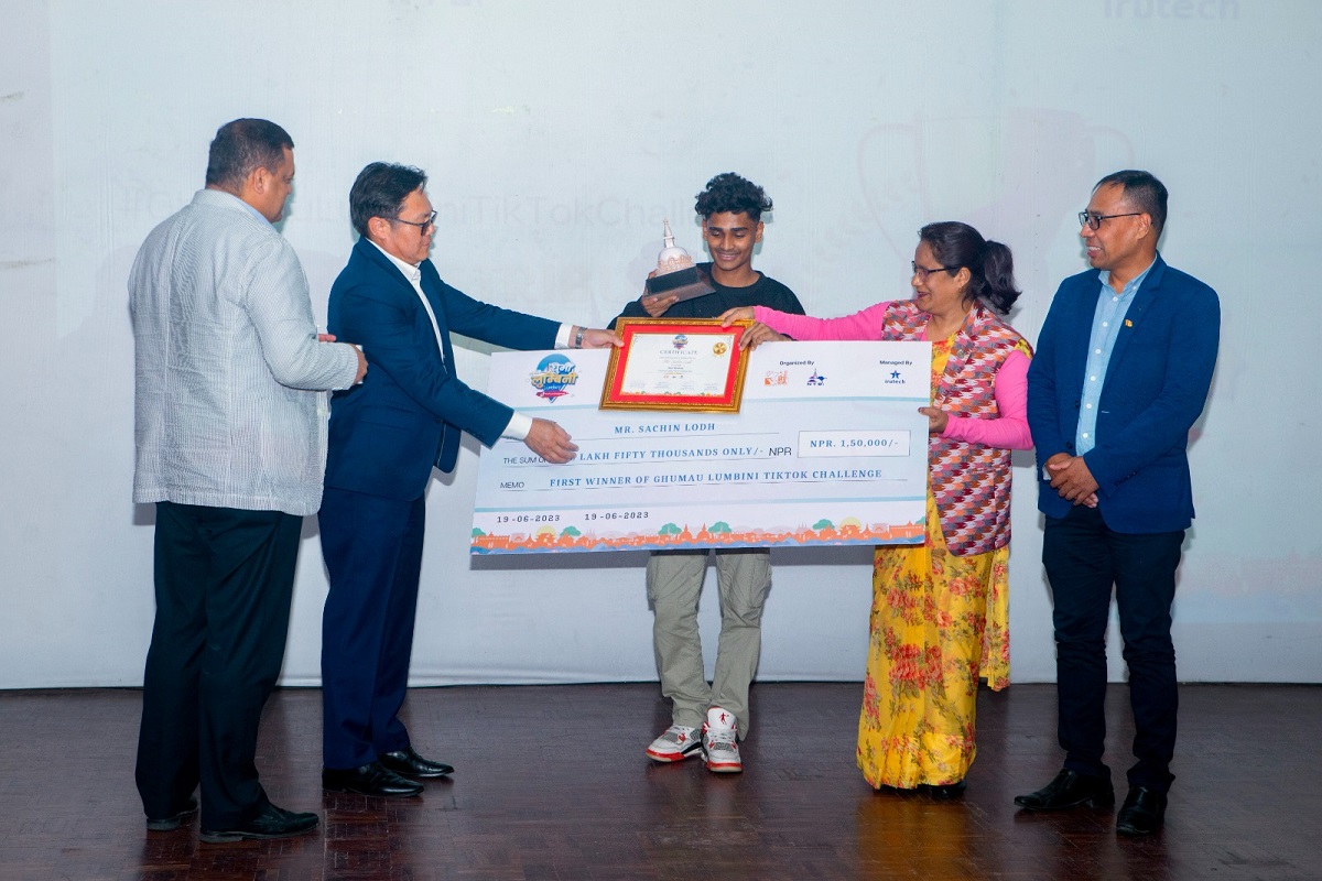 लुम्बिनी विकास कोष र नेपाल पर्यटन बोर्डको संयुक्त आयोजनामा वैसाख १० गतेदेखि जेठ २० गतेसम्म भएको घुमौं लुम्बिनी टिकटक च्यालेन्ज प्रतियोगिता २०२३ को विजेताहरूलाई पुरस्कार वितरण गरिएको छ।