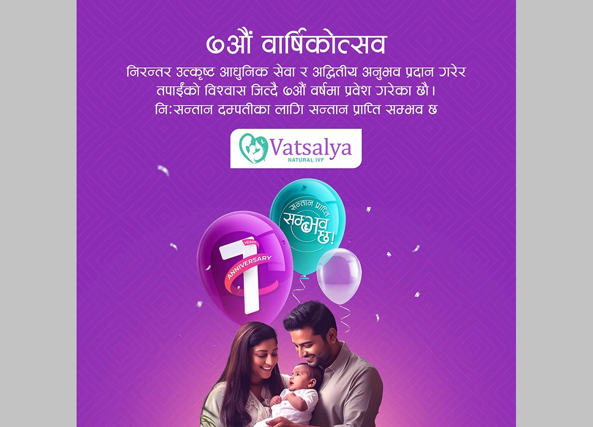३ हजारभन्दा बढी दम्पतीलाई आइभिएफ विधिमार्फत् सन्तान प्राप्तिको खुशी दिँदै आएको वात्सल्य सातौं वर्षमा प्रवेश गरेको छ।