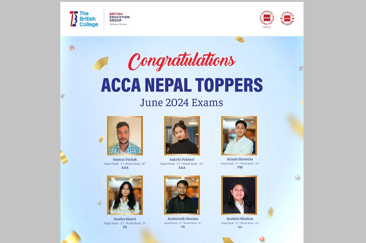 द ब्रिटिस कलेजको एसिसिए शैक्षिक कार्यक्रममा अध्ययरत विद्यार्थी स्यान्ड्रा खत्री विश्व टपरको दर्जामा पर्न सफल भएकी छिन्।