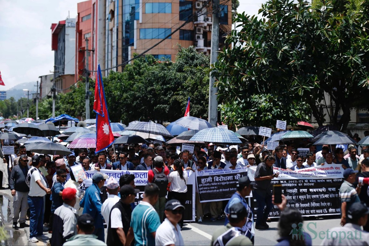 शुक्रबार नेपाल सुन चाँदी व्यवसायी महासंघ, नेपाल सुनचाँदी रत्न तथा आभूषण महासंघ र नेपाल हस्तकला महासंघको अगुवाइमा व्यवसायीहरूले र्याली निकालेका हुन्। माइतीघर मण्डलदेखि निकालिएको उक्त र्याली नयाँ बानेश्वरमा पुगेर कोण सभामा परिणत हुनेछ।